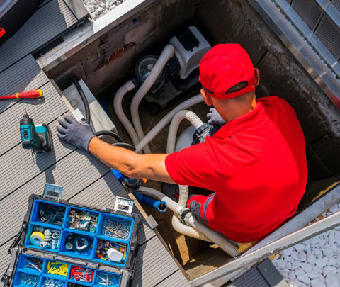 - Instalación de equipamiento: bombas, filtros, climatización y automatización.